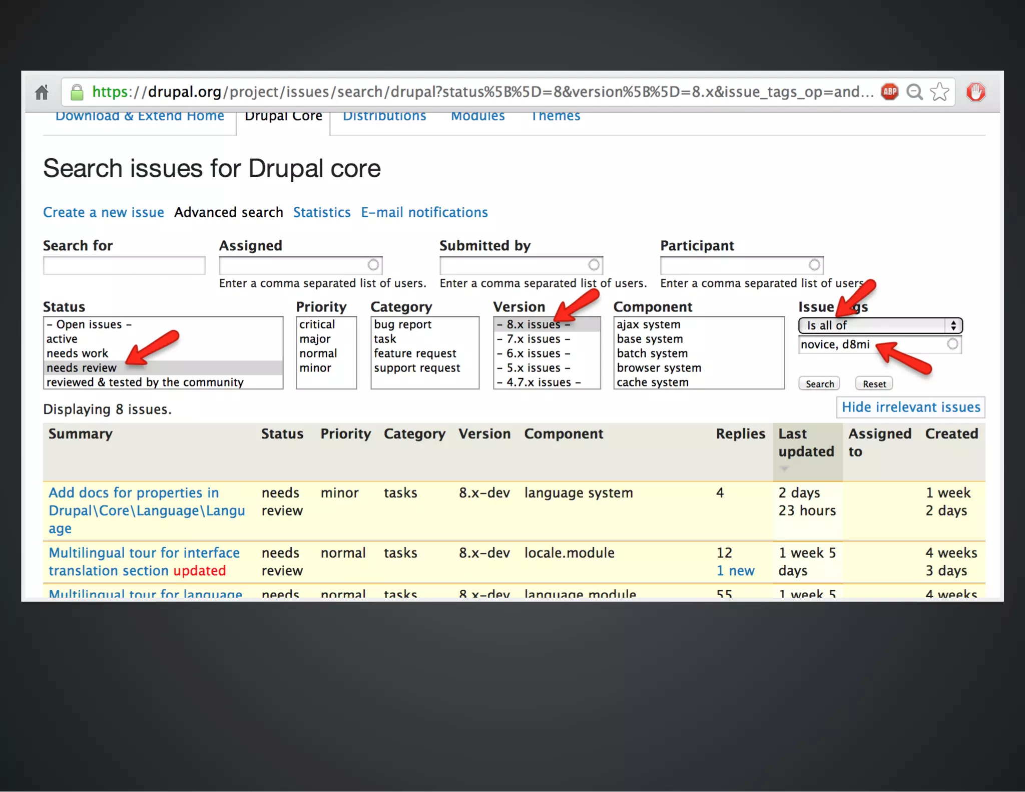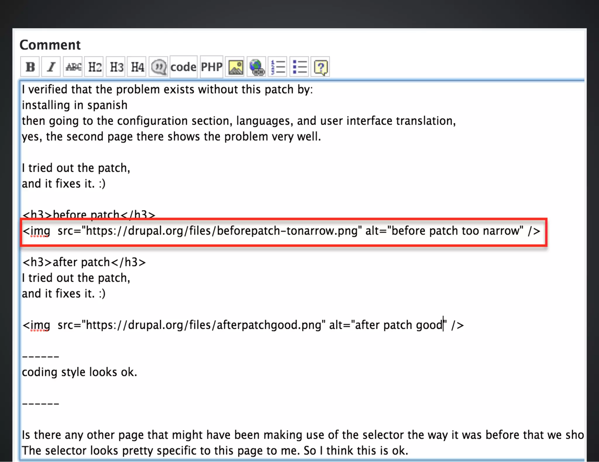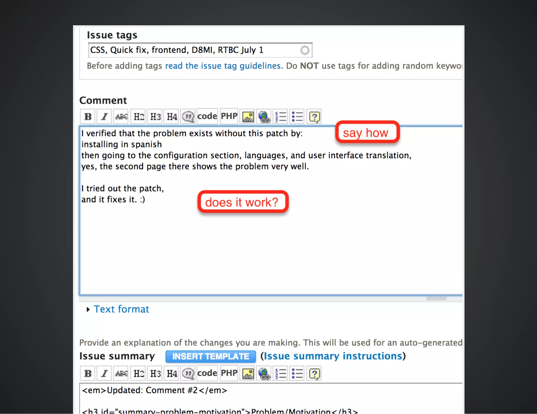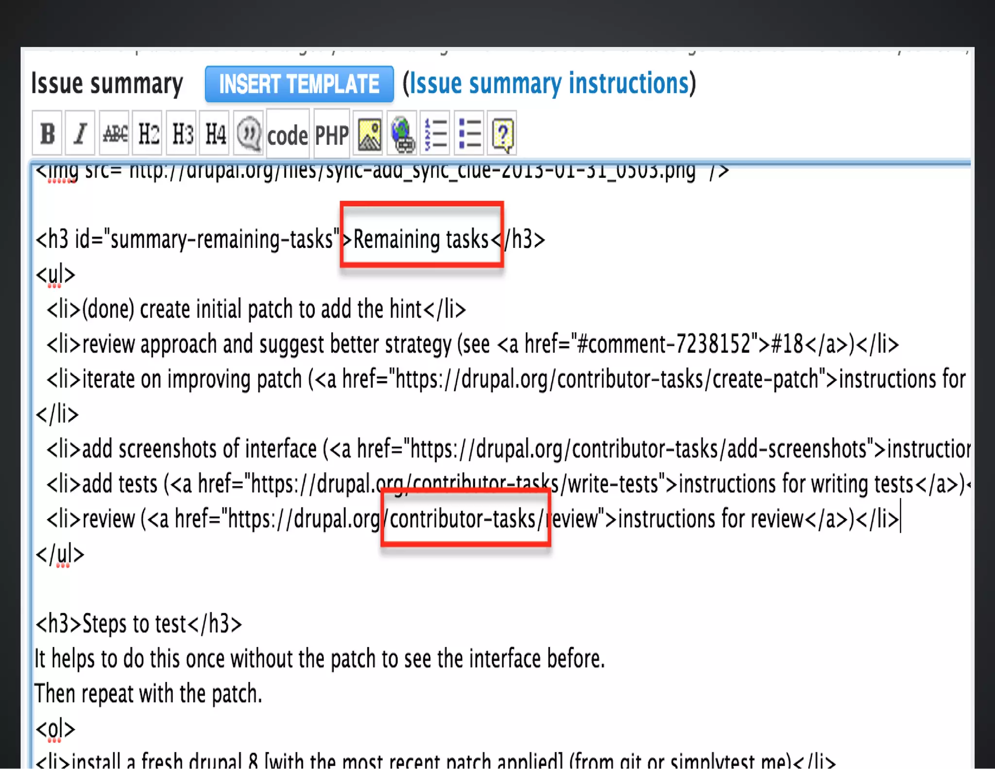 The document outlines best practices for conducting patch reviews in the Drupal community, emphasizing the importance of specificity in review tags and the need for detailed issue summaries. It provides resources and links for contributors to improve their review process, including accessibility and usability reviews, as well as guidelines for writing clear documentation. Additionally, it encourages mentorship and continuous improvement in reviewing and contributing to Drupal's core initiatives.