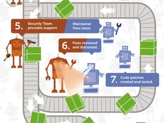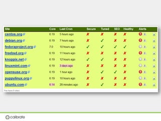 The document discusses securing Drupal websites through best practices, addressing vulnerabilities, and outlining the responsibilities of security teams. It highlights the importance of community involvement and regular updates to address security issues, while providing guidelines on using the Drupal API securely. Additionally, it lists common vulnerabilities and emphasizes the need for secure configurations and continuous monitoring.