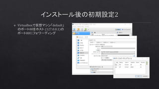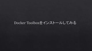 The document provides resources and links related to Docker Toolbox, including installation guides for Mac and Windows. It mentions the use of Docker Machine to create a Linux VM and outlines key ports for services like MySQL. Additionally, it references the Docker Hub for accessing Docker images.