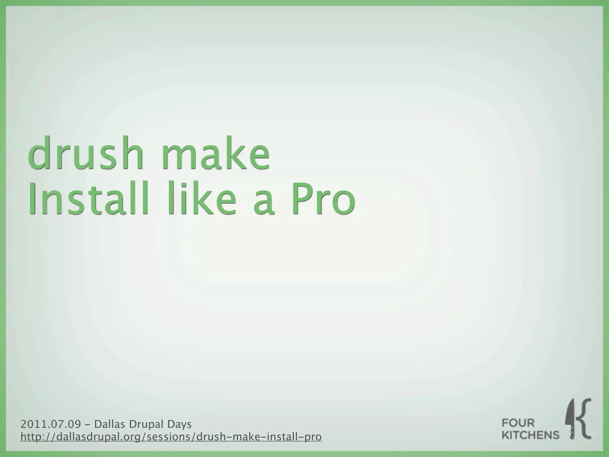 The document explains the Drush tool, a command line interface for managing Drupal installations, and specifically focuses on Drush Make, which automates the process of setting up a complete Drupal site by parsing a configuration file. It emphasizes the efficiency and ease of using Drush Make to include various components such as Drupal core, modules, themes, and external libraries. The document also provides examples and guidance on creating makefiles, highlighting the time-saving benefits of using Drush Make for consistent installations.