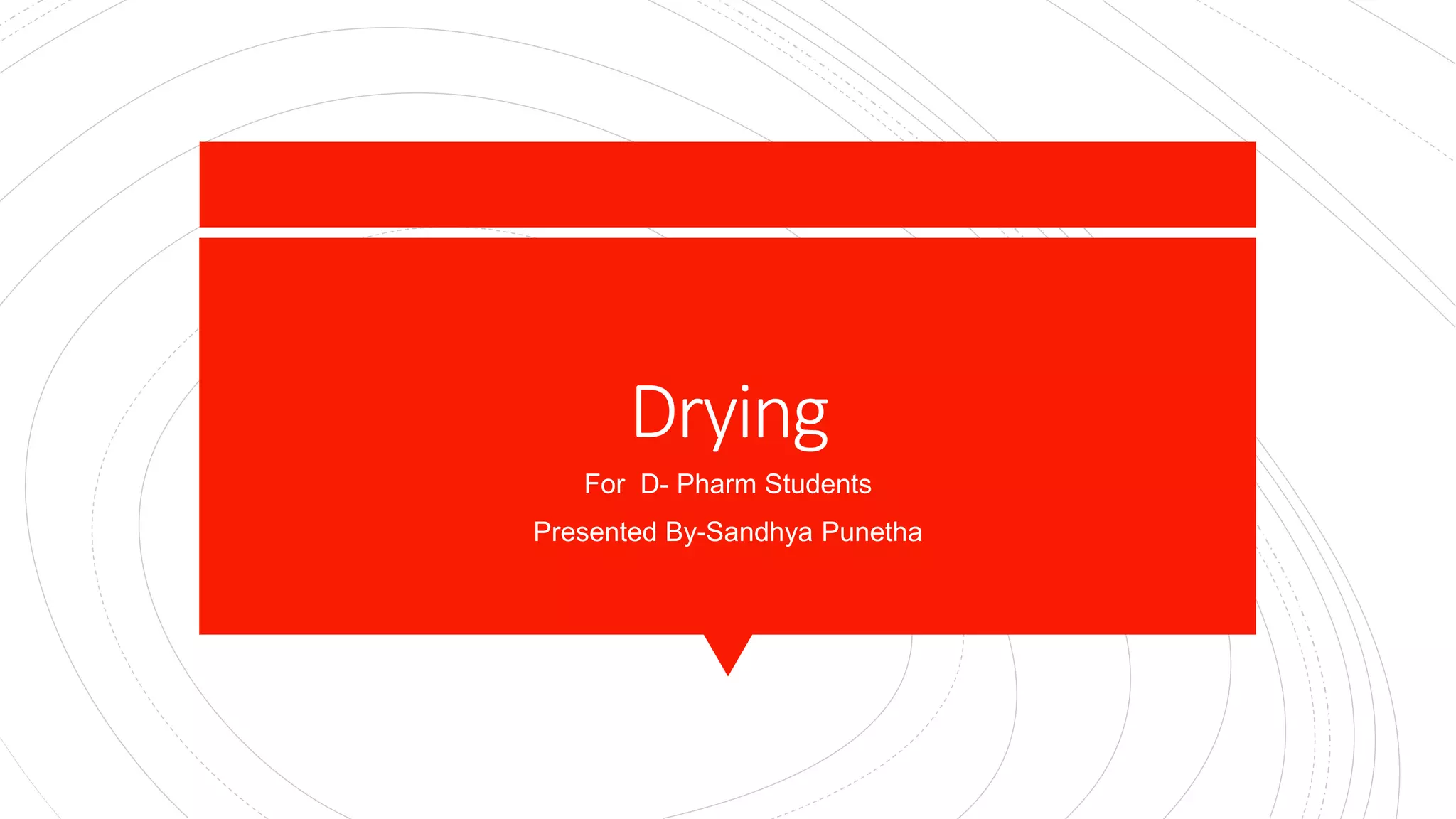 The document discusses different drying techniques used in the pharmaceutical industry. It describes tray drying, fluidized bed drying, vacuum drying, and freeze drying. Tray drying involves circulating hot air over solid materials placed on trays to remove moisture. Fluidized bed drying suspends materials in a stream of hot air to dry them uniformly. Vacuum drying uses reduced pressure to lower the boiling point of water for faster evaporation. Freeze drying works by freezing materials, reducing pressure, and allowing ice to sublimate directly to water vapor for drying thermolabile substances. Each method has advantages like speed, uniformity, or suitability for certain materials as well as disadvantages like cost or potential for degradation.