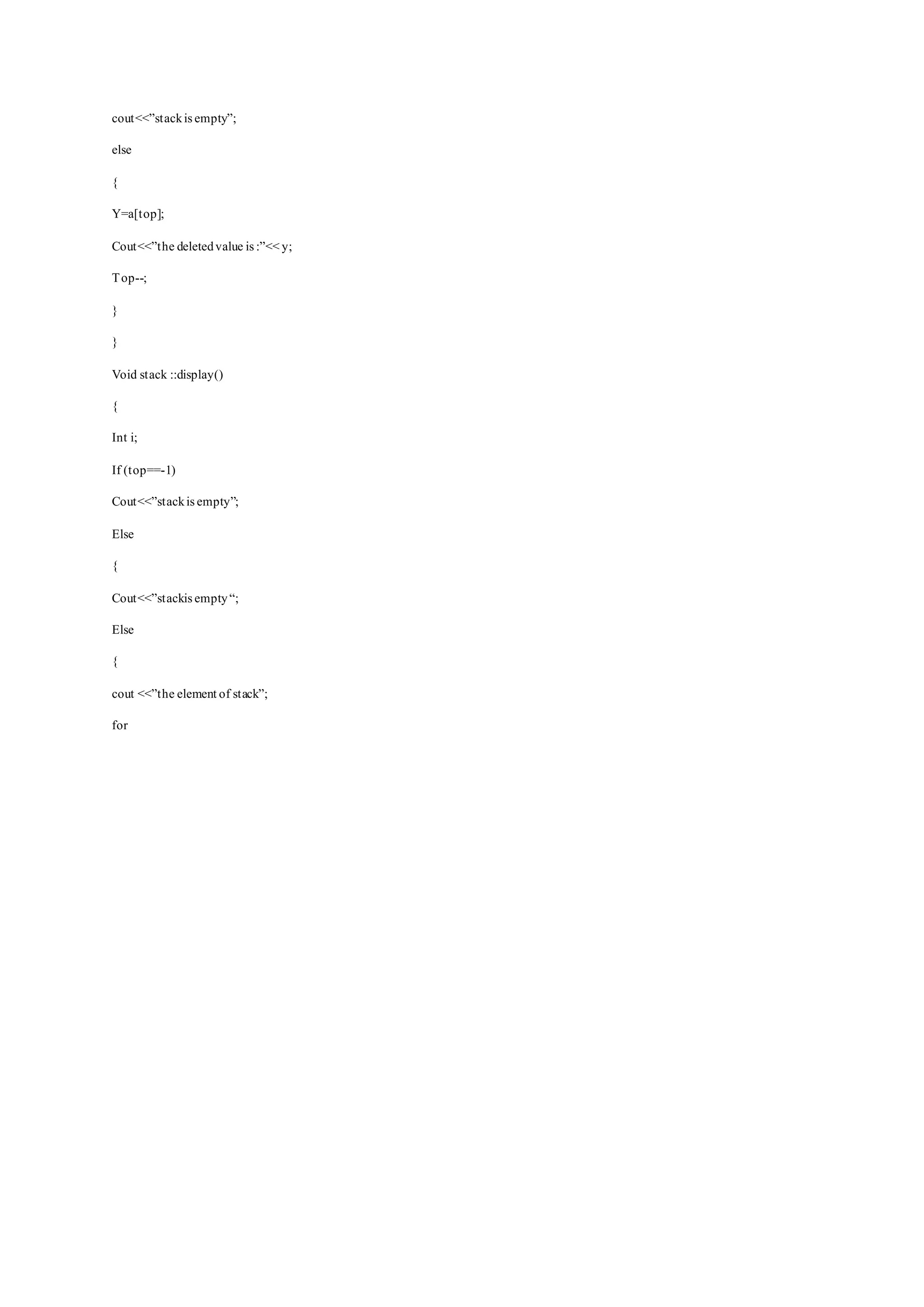 Void stack::pop()