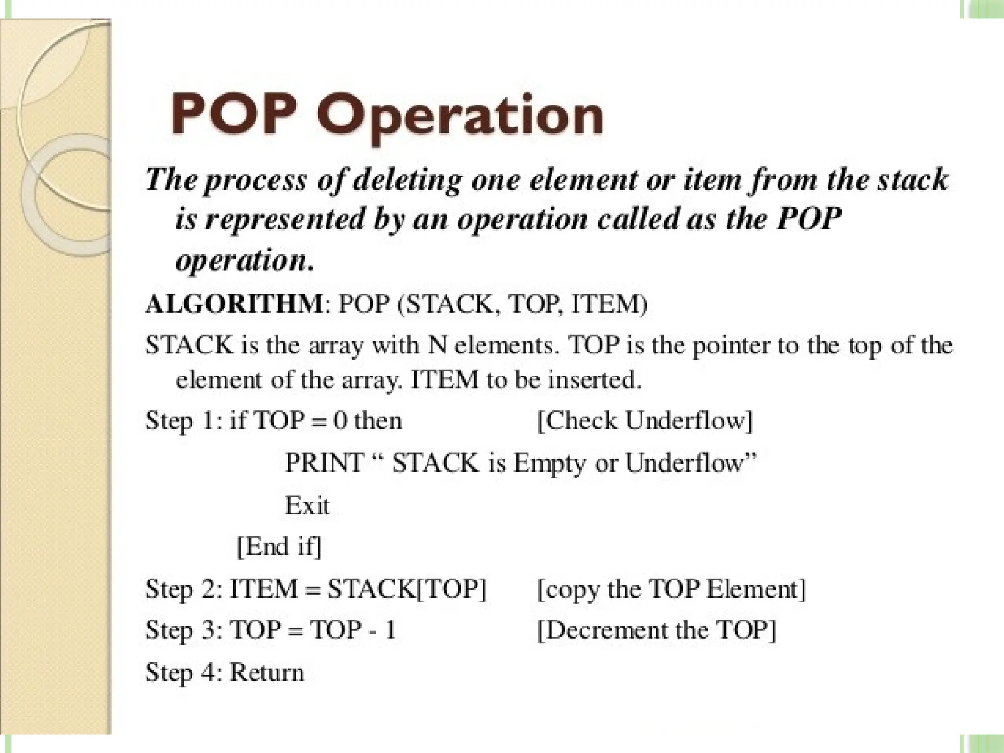 POP() - DELETINGAN ELEMENT FROM A STACK