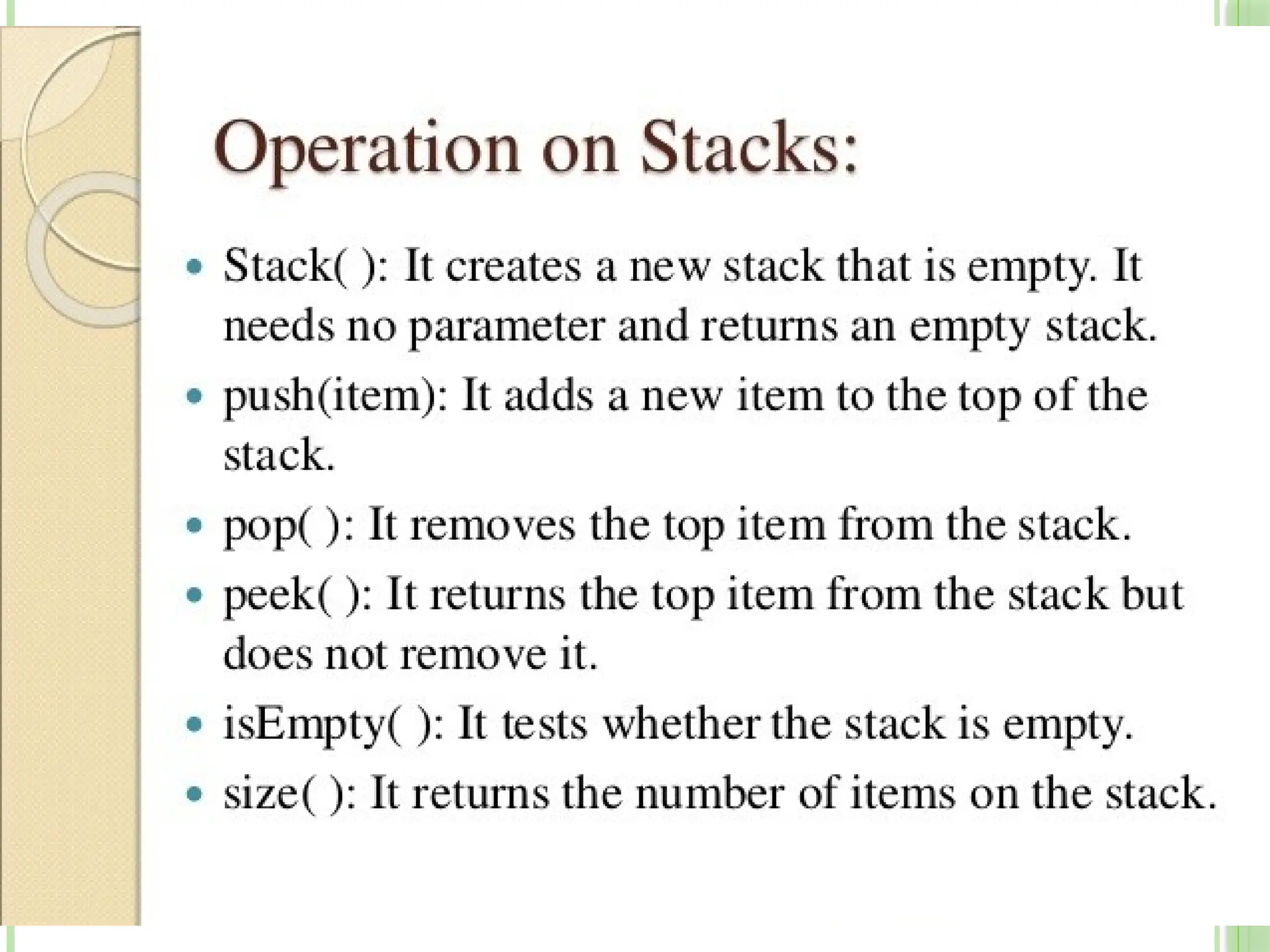 isEmpty() – Return true if the stack is empty, otherwise return false.