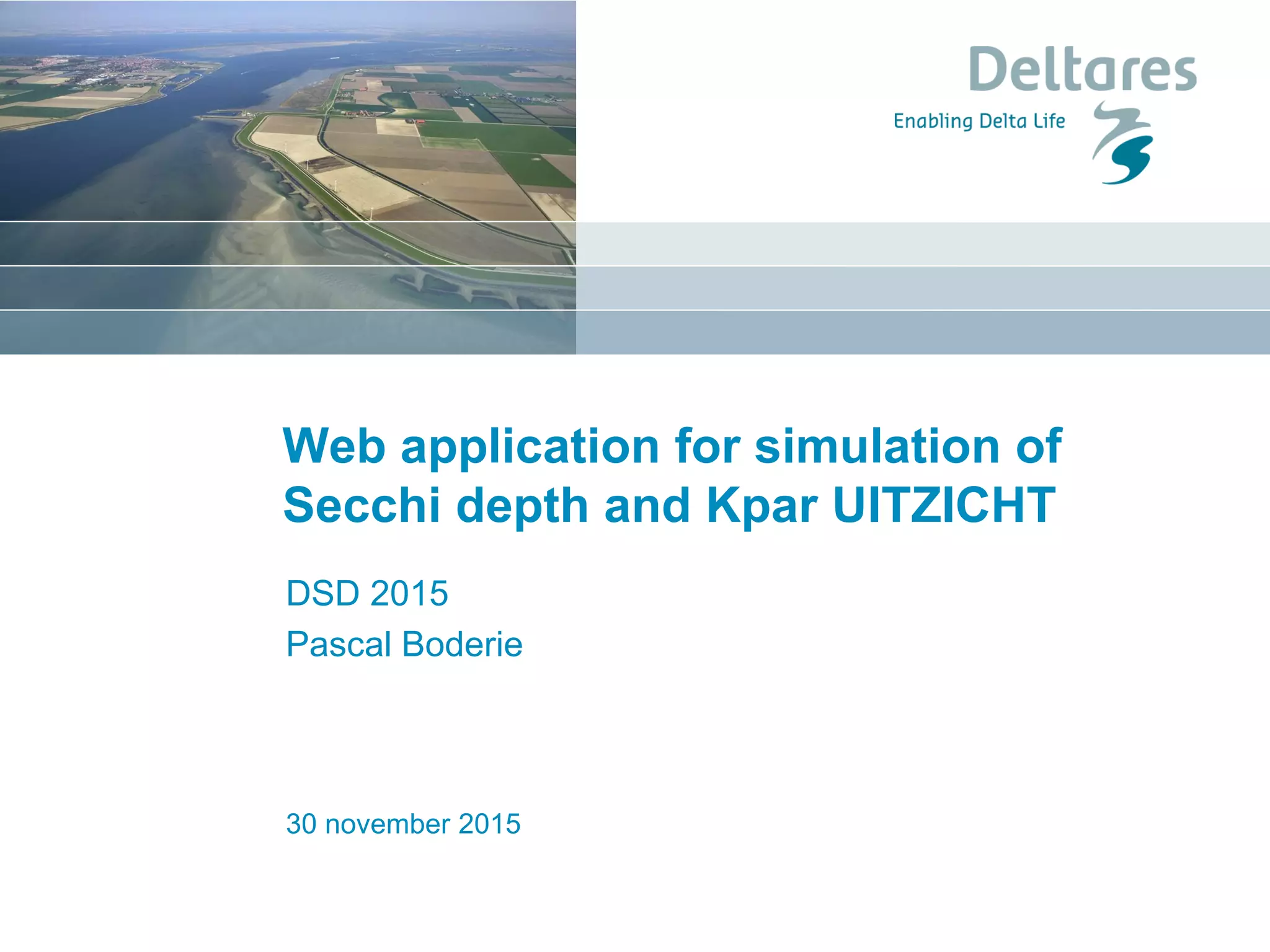 This document discusses a web application called UITZICHT that simulates Secchi depth and light penetration in water. It models the complex interactions of light underwater, which is impacted by inherent optical properties like absorption and scattering, and apparent optical properties like Secchi depth. Key factors that influence light levels include chlorophyll, total suspended matter, inorganic solids, colored dissolved organic matter, and bottom depth. The application was developed by converting the original FORTRAN code to JavaScript so it can run on any browser and be easily shared. It simulates optical properties of water based on parameters from a 1995 publication by Buiteveld.