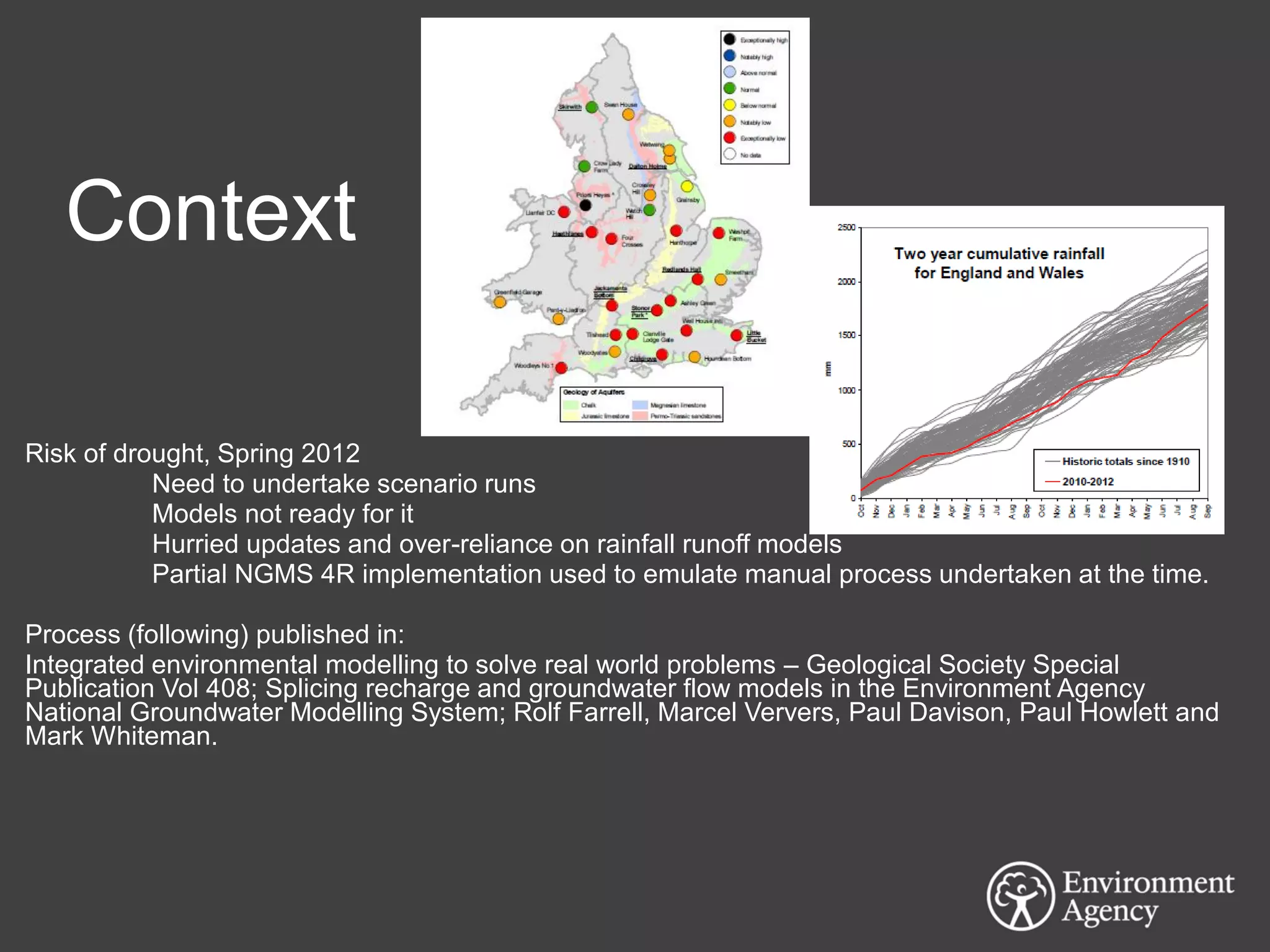 - Linked rainfall recharge models with groundwater models in the National Groundwater Modelling System (NGMS) to allow for scenario runs during a 2012 drought when models were not ready.