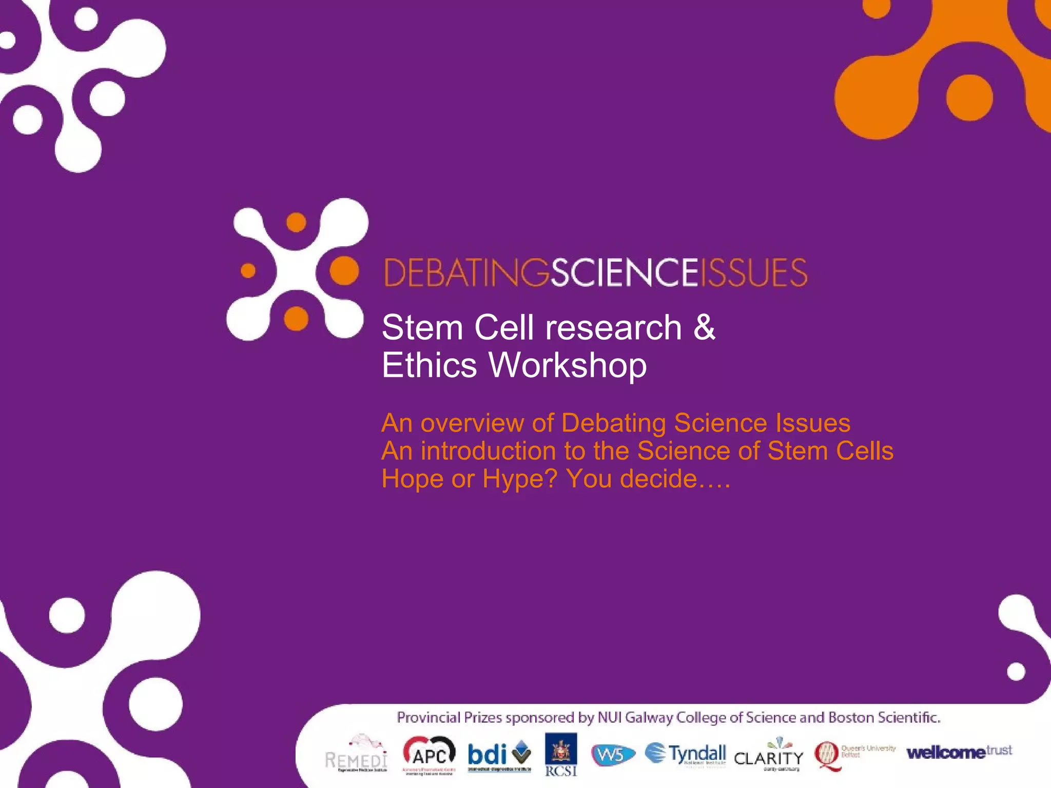 This document provides information about a debating competition on biomedical science issues for senior cycle students in Ireland. It discusses stem cell research and ethics as a potential debate topic. Key points include: