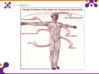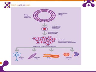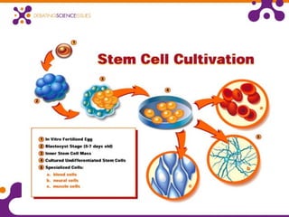 - The debate around stem cell research involves differing international views on embryo research and therapeutic cloning. Mutual understanding of scientific facts