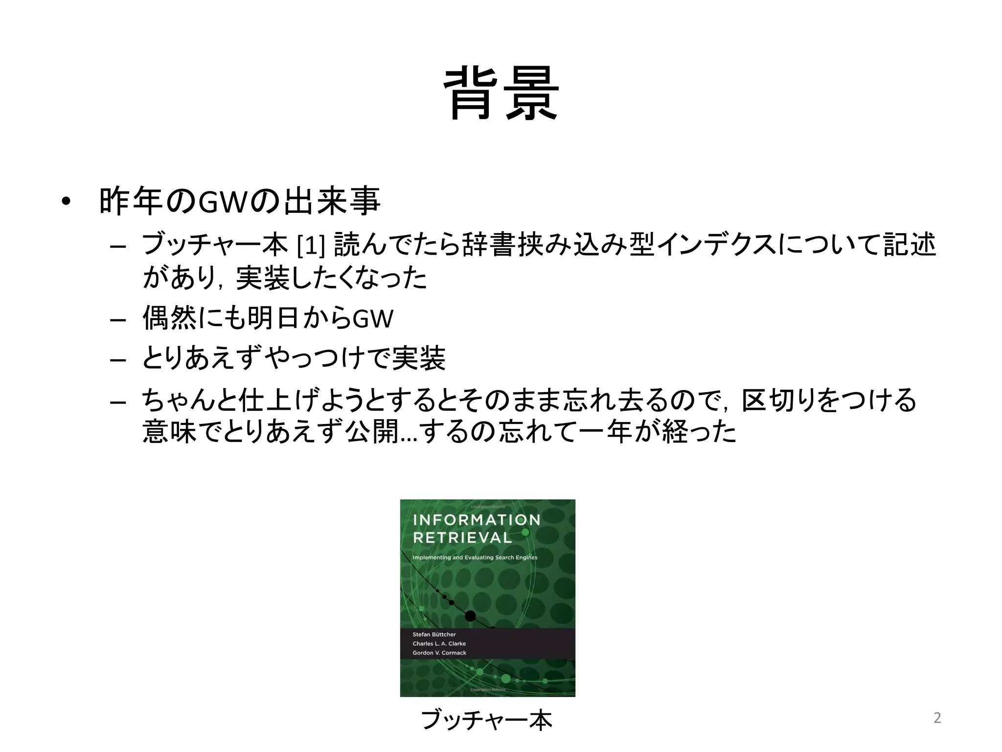 – 著者のひとりButtcher氏の博士論文.Interleaving Dictionaryの初出?