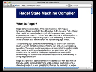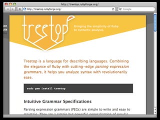 The document discusses domain-specific languages (DSLs) and provides examples of internal and external DSLs. It mentions using DSLs to define date operations and search queries. Code snippets demonstrate building DSLs in Ruby and Scala, including using automata and semantic models. The document advises always using a semantic model and provides tips on metaprogramming techniques in Ruby like method_missing and class_eval. It concludes by thanking the reader and providing contact information.