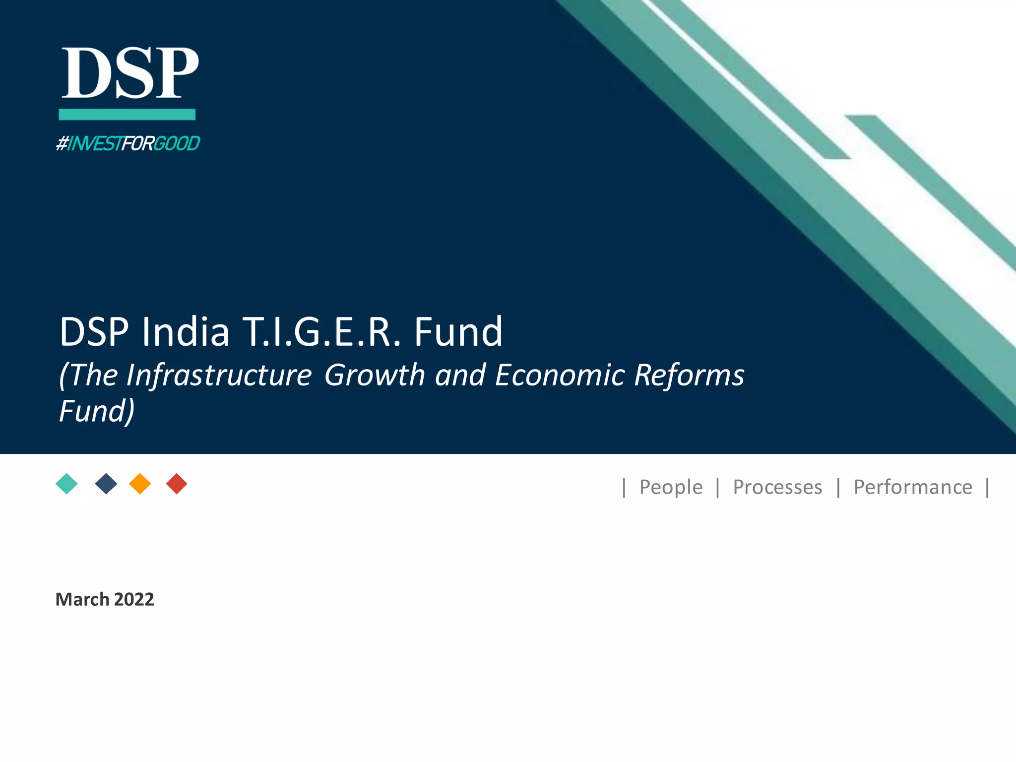This document discusses the DSP India T.I.G.E.R. Fund, which aims to capture growth from India's investment cycle revival and economic reforms. It focuses on sectors related to infrastructure growth and economic reforms like construction, cement, manufacturing, and autos. The document outlines reasons for recommending the fund, such as signs the investment cycle has bottomed out and capacity utilization rising. It also discusses the government's push for capex spending and various reforms that have been implemented in India to support the investment theme. Key data points are presented to track the building capex cycle in India.