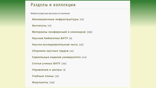 Документ описывает создание электронной библиотеки научных трудов с использованием программного обеспечения DSpace, предназначенного для архивирования и организации электронных ресурсов. Он акцентирует внимание на важности метаданных, таких как стандарт Dublin Core, для описания и упрощения поиска информационных объектов. Также рассматриваются затраты, организационные аспекты и ресурсы, необходимые для успешной реализации проекта электронной библиотеки.