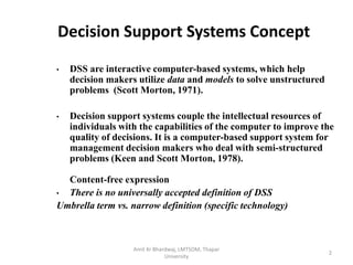 • MIS focuses on structured tasks and • DSS focuses on semi-structured