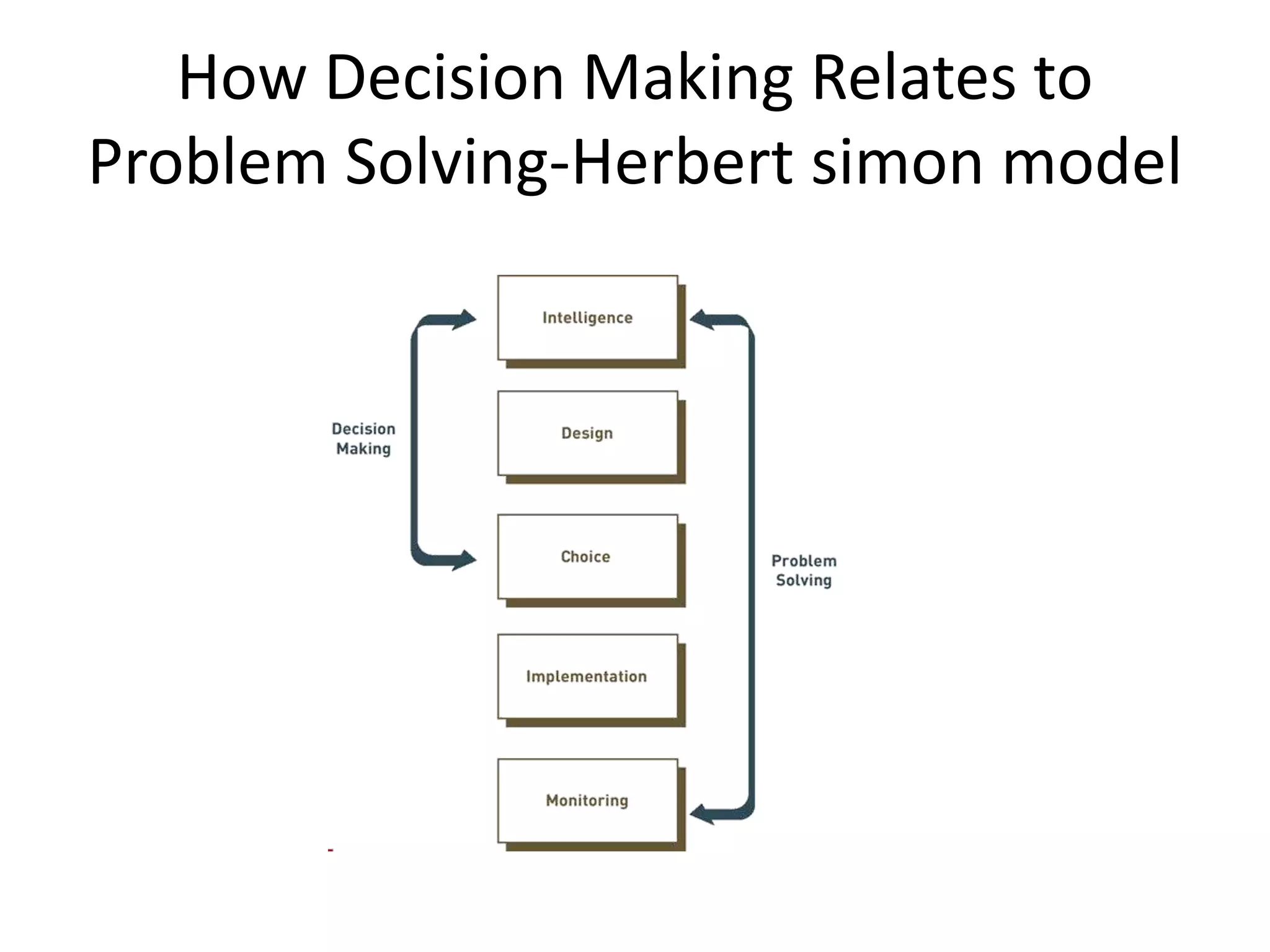 Herbert Simon proposed a 4-phase model of problem solving: intelligence, design, choice, and review. Decision making involves either programmed or non-programmed decisions. Decision support systems (DSS) provide interactive support for semi-structured and unstructured decisions through queries, models, and reports without making the final decision. A DSS collects data, allows for group work, and can incorporate artificial intelligence. Common DSS models include behavioral, management science, and operations research models. Group decision support systems (GDSS) facilitate group problem solving through individual workstations, facilitation software, and aggregation of ideas, comments, and votes.