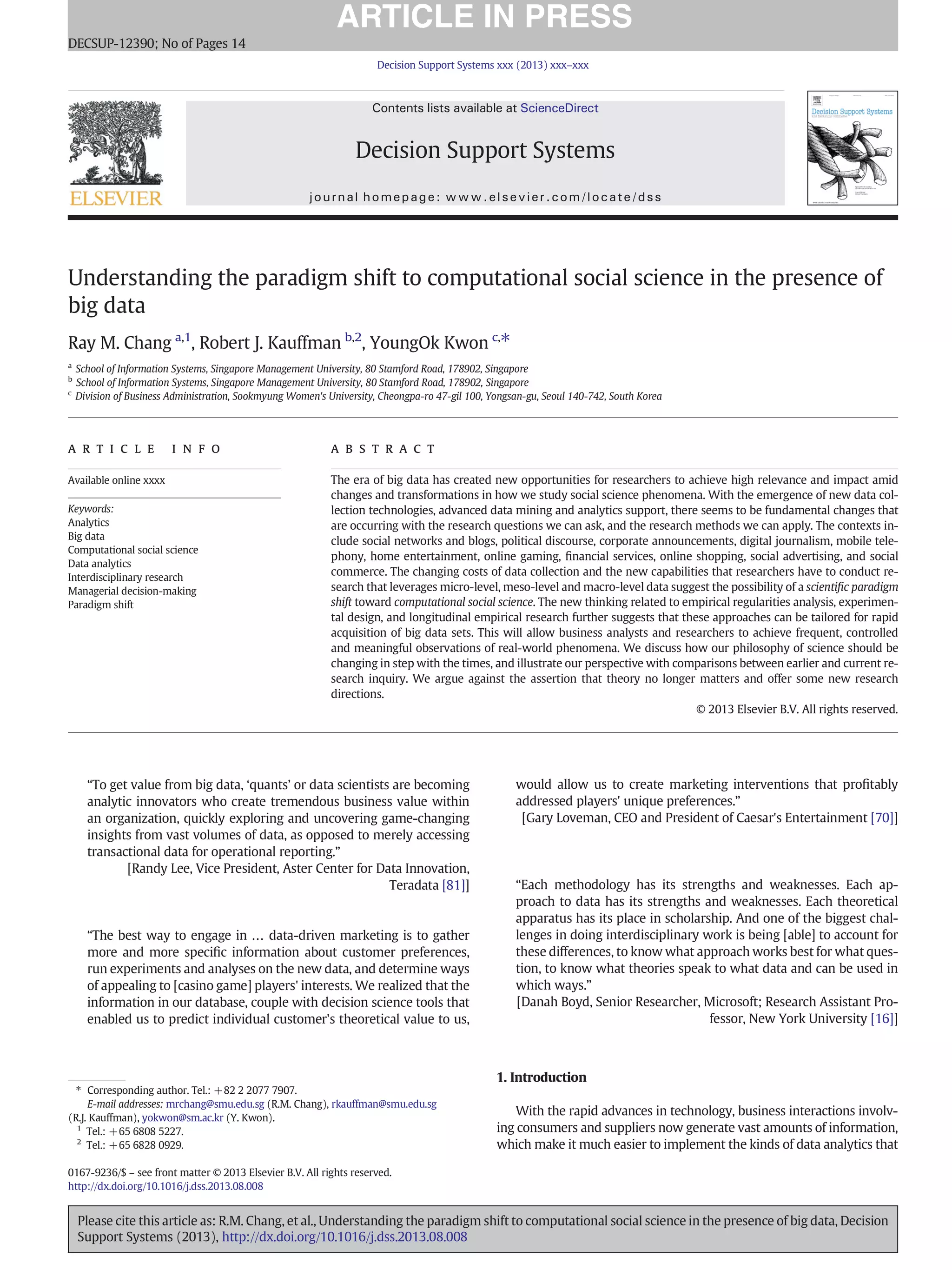 The document discusses the paradigm shift in social science research enabled by big data. Key points: