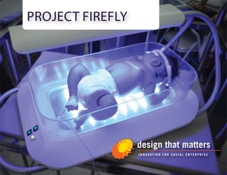 Project Firefly aims to develop an accessible blue light therapy tool for newborns in rural Vietnamese hospitals to alleviate pressure on overloaded national-level hospitals. The design is based on in-context field research highlighting the importance of keeping infants close to their mothers, which enhances trust and creates a positive hospital environment. The approach emphasizes affordability and ease of use for mothers and healthcare staff.