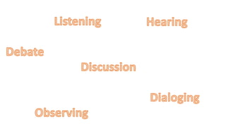 Dialogue is aboutdeep listening to each other without biases and judgment. The process