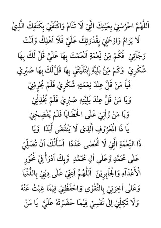 4) Several additional prayers praising Allah's greatness, power, and sovereignty. The document encourages following the supplications found in the Quran and traditions of the Prophet.