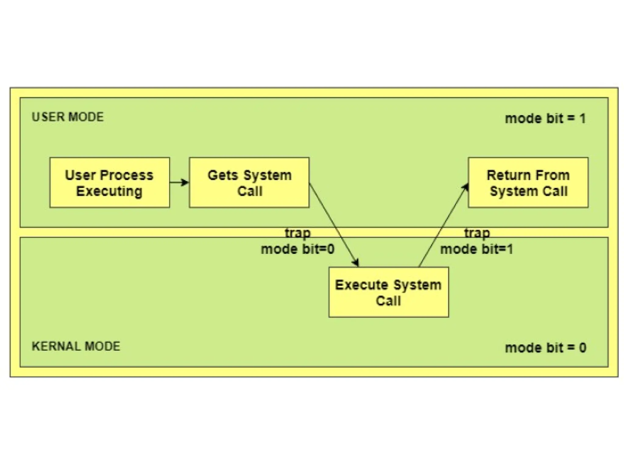 Dual mode operations in operating systems involve two modes: user mode and system mode (kernel mode), where user mode corresponds to a bit value of 1 and system mode to 0. User mode allows applications to run while system mode provides hardware protection and execution of privileged instructions. Transitions between these modes occur during system calls or exceptions, facilitating requests from user applications.