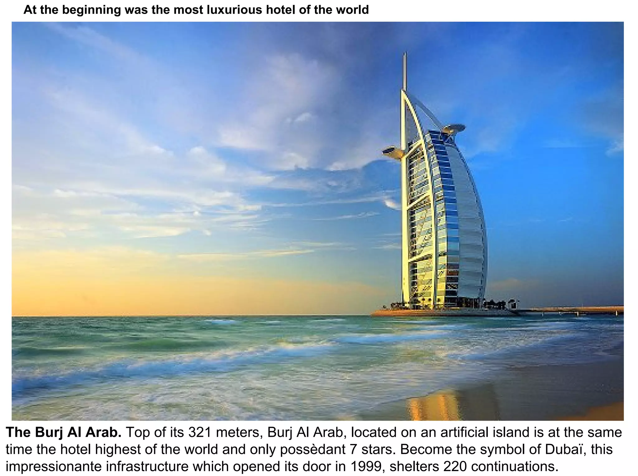 The document provides details on various ambitious construction projects underway or planned in Dubai, United Arab Emirates. These include the Burj Dubai tower planned to reach 800 meters tall; Dubai Waterfront which will cover 81 square kilometers and include artificial palm-shaped islands; and Dubailand, envisioned as the largest theme park in the world covering a vast area and featuring topics such as a dinosaur park and indoor ski resort. The projects demonstrate Dubai's architectural ambitions and goal to develop as a global tourist and economic center.