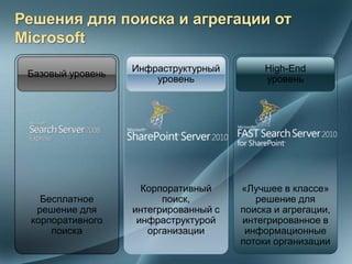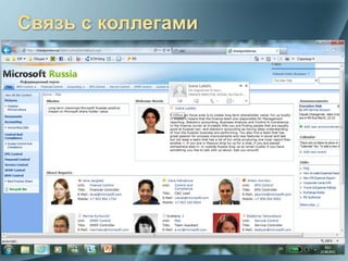 Документ описывает решения Microsoft для повышения организационной эффективности, включая инструменты для создания и управления документами, интеграцию с другими системами и поддержку аналитики. Он подчеркивает важность централизации хранения данных, управления знаниями и повышения продуктивности сотрудников через платформы SharePoint и другие технологии. Кроме того, представлено множество функций, таких как контроль исполнения поручений и мощная поддержка BI для анализа данных.