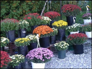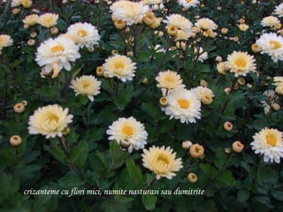 Chrysanthemums, known as 'golden flowers' in Greek, are significant for adding color to gardens in late summer and fall. The flower also holds cultural importance in Japan as it symbolizes the emperor and the imperial house. The document briefly touches on the aesthetics and cultural relevance of chrysanthemums.