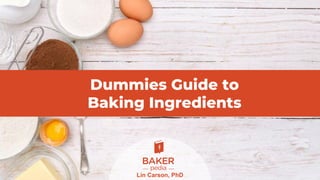 The document is a comprehensive guide on baking ingredients, covering essential elements like baker’s percent, flour types, leavening systems, and the roles of various ingredients such as water, eggs, and fats in baking. It explains the functions and characteristics of different components and their impact on baking outcomes, as well as guidelines for achieving consistency and quality in baked products. The resource aims to provide foundational knowledge for aspiring bakers to master baking techniques.