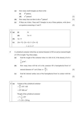 This document contains a summary of 9 multi-part mathematics problems involving concepts like algebra, geometry, trigonometry, matrices and percentages. For brevity, the summary focuses on stating the key steps and conclusions of each problem rather than including all working details.