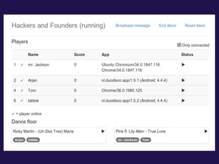The document discusses a case study of rewriting the architecture of a dance matching app called DuoDisco using the Erlang programming language. Originally the app had issues with race conditions and debugging complex interactions between connected players. By modeling each player as an Erlang process and using processes to represent rooms and matchmaking, the rewritten app in Erlang had no more bugs. The presenter advocates using the right tools like Erlang for concurrency and fault tolerance when needed.