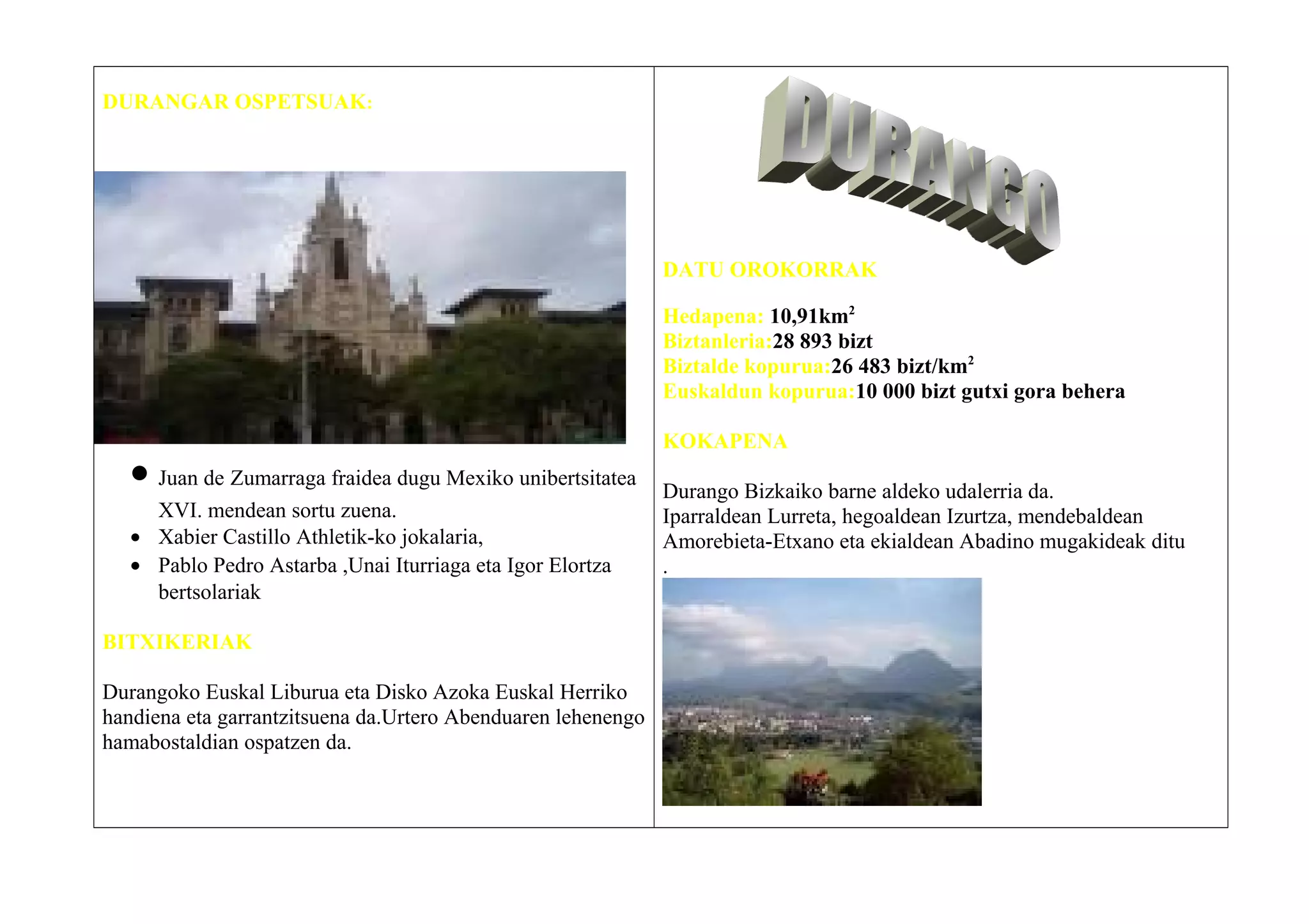 jasotzen ditu. Durango herriguneak monumentu asko ditu.