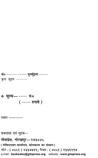 ◊ãŒÊÁ∑§ŸËdÙÃÁ‚ SŸÊàflÊ ¬˝ÙÖÖfl‹ªãœ∑¥§ ÷flÃÈ „Ô üÊË‚ÈãŒÁ⁄U àflã◊ÈŒH 3H ‚È⁄UÊÁœ¬ÁÃ∑§ÊÁ◊ŸË∑§⁄U‚⁄UÙ¡ŸÊ‹ËœÎÃÊ¢ . ‚øãŒŸ‚∑ȧ«˜U.∑ȧ◊ʪÈL§÷⁄UáÊ Áfl÷˝ÊÁ¡ÃÊ◊˜˜– ◊„ÔʬÁ⁄U◊‹ÙÖÖfl‹Ê¢ ‚⁄U‚‡ÊÈh∑§SÃÍÁ⁄U∑§Ê¢ ªÎ„ÔÊáÊ fl⁄UŒÊÁÿÁŸ ÁòʬÈ⁄U‚ÈãŒÁ⁄U üÊˬ˝ŒH 4H ªãœflʸ◊⁄UÁ∑§ãŸ⁄UÁ¬˝ÿÃ◊Ê‚¢ÃÊŸ„ÔSÃÊê’È¡- ¬˝SÃÊ⁄UÒÌœ˝ÿ◊ÊáÊ◊ÈûÊ◊Ã⁄U¢ ∑§Ê‡◊Ë⁄U¡ÊÁ¬Ü¡⁄U◊˜˜– ◊ÊÃ÷ʸSfl⁄U÷ÊŸÈ◊á«‹‹‚à∑§ÊÁãì˝ŒÊŸÙÖÖfl‹¢ øÒÃÁãŸ◊¸‹◊ÊßÙÃÈ fl‚Ÿ¢ üÊË‚ÈãŒÁ⁄U àflã◊ÈŒ◊˜˜H 5H * üÊˌȪʸ◊ÊŸ‚-¬Í¡Ê* ÁòʬÈ⁄U‚ÈãŒÁ⁄U! ß‚ •ʰfl‹◊¥ ¬˝Êÿ— Á¡ÃŸ ÷Ë ‚ȪÁãœÃ ¬ŒÊÕ¸ „Ò¥U, fl ‚÷Ë «UÊ‹ ªÿ „Ò¥U; ß‚‚ ÿ„U ¬⁄U◊ ‚ȪÁãœÃ „UÊ ªÿÊ „ÒU– •× ß‚∑§Ê ‹ªÊ∑§⁄U ’ʋʥ∑§Ê ∑¢§ÉÊË‚ ¤ÊÊ«∏U ‹Ê •ÊÒ⁄U ª¢ªÊ¡Ë∑§Ë ¬ÁflòÊ œÊ⁄UÊ◊¥ Ÿ„Uʕʖ ÃŒŸãÃ⁄U ÿ„U ÁŒ√ÿ ªãœ ‚flÊ◊¥ ¬˝SÃÈà „ÒU, ÿ„U ÃÈê„UÊ⁄U •ÊŸãŒ∑§Ë flÎÁh ∑§⁄UŸflÊ‹Ê „UÊH 3H ‚ê¬ÁûÊ ¬˝ŒÊŸ ∑§⁄UŸflÊ‹Ë fl⁄UŒÊÁÿŸË ÁòʬÈ⁄U‚ÈãŒÁ⁄U! ÿ„U ‚⁄U‚ ‡ÊÈh ∑§SÃÍ⁄UË ª˝„UáÊ ∑§⁄UÊ– ß‚ Sflÿ¢ Œfl⁄UÊ¡ ßãº˝∑§Ë ¬àŸË ◊„UÊ⁄UÊŸË ‡ÊøË •¬Ÿ ∑§⁄U- ∑§◊‹Ê¥◊¥ ‹∑§⁄U ‚flÊ◊¥ π«∏UË „Ò¥U– ß‚◊¥ øãŒŸ, ∑È¢§∑ȧ◊ ÃÕÊ •ªÈL§∑§Ê ◊‹ „UÊŸ‚ •ÊÒ⁄U ÷Ë ß‚∑§Ë ‡ÊÊ÷Ê ’…∏U ªÿË „ÒU– ß‚‚ ’„ÈUà •Áœ∑§ ªãœ ÁŸ∑§‹Ÿ∑§ ∑§Ê⁄UáÊ ÿ„U ’«∏UË ◊ŸÊ„U⁄U ¬˝ÃËà „UÊÃË „ÒUH 4H ◊ʰ üÊË‚ÈãŒÁ⁄U! ÿ„U ¬⁄U◊ ©UûÊ◊ ÁŸ◊¸‹ flSòÊ ‚flÊ◊¥ ‚◊̬à „ÒU, ÿ„U ÃÈê„UÊ⁄U „U·¸∑§Ê ’…∏UÊfl– ◊ÊÃÊ! ß‚ ªãœfl¸, ŒflÃÊ ÃÕÊ Á∑§ãŸ⁄UÊ¥∑§Ë ¬˝ÿ‚Ë ‚ÈãŒÁ⁄Uÿʰ •¬Ÿ »Ò§‹Êÿ „ÈU∞ ∑§⁄U-∑§◊‹Ê¥◊¥ œÊ⁄UáÊ Á∑§ÿ π«∏UË „Ò¥U– ÿ„U ∑§‚⁄U◊¥ ⁄°UªÊ „ÈU•Ê ¬ËÃÊê’⁄U „ÒU– ß‚‚ ¬⁄U◊ ¬˝∑§Ê‡Ê◊ÊŸ ‚Íÿ¸◊á«U‹∑§Ë ‡ÊÊ÷Ê◊ÿË ÁŒ√ÿ ∑§ÊÁãà ÁŸ∑§‹ ⁄U„UË „ÒU, Á¡‚∑§ ∑§Ê⁄UáÊ ÿ„U ’„ÈUà „UË ‚ȇÊÊÁ÷à „UÊ ⁄U„UÊ „ÒUH 5H