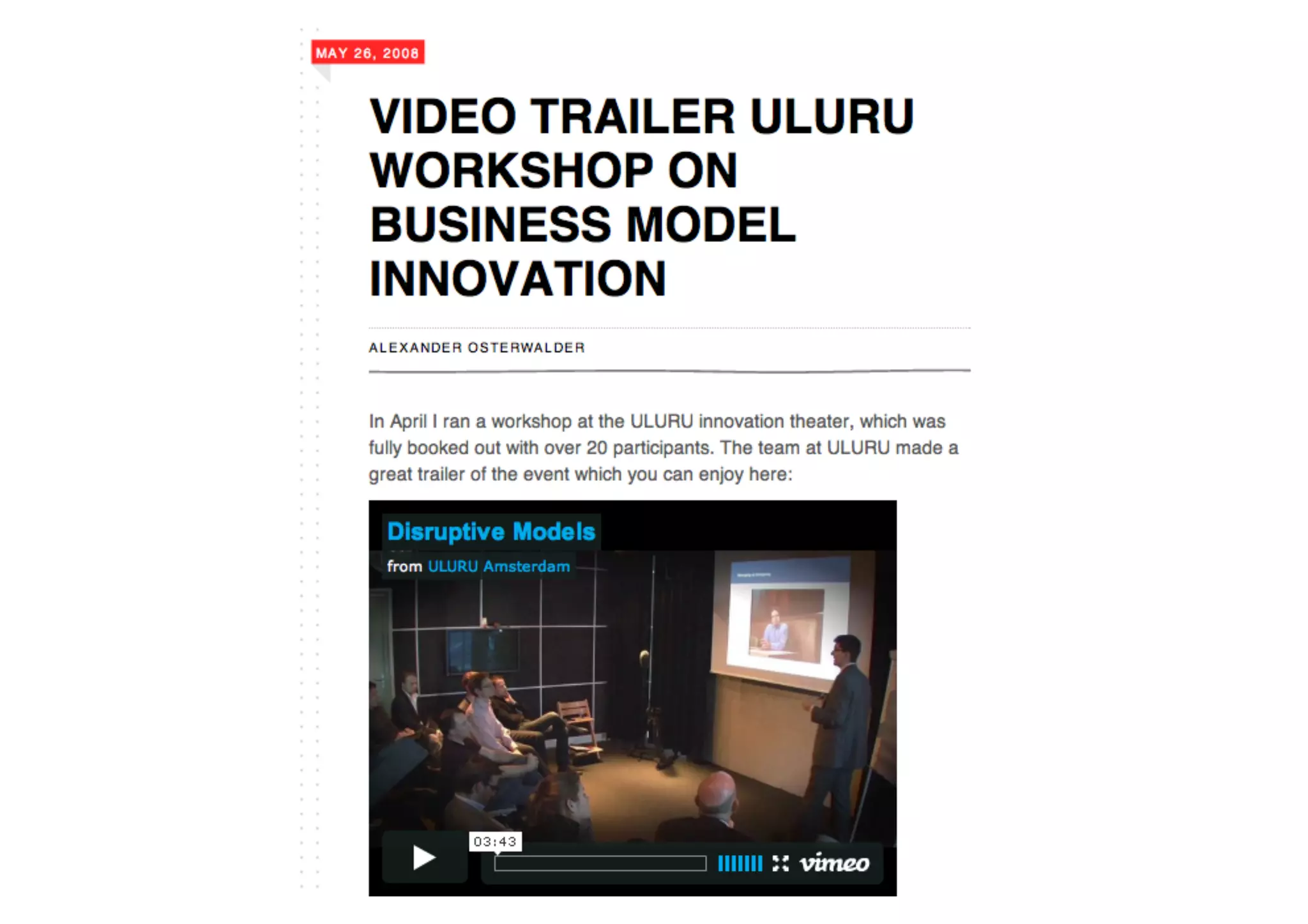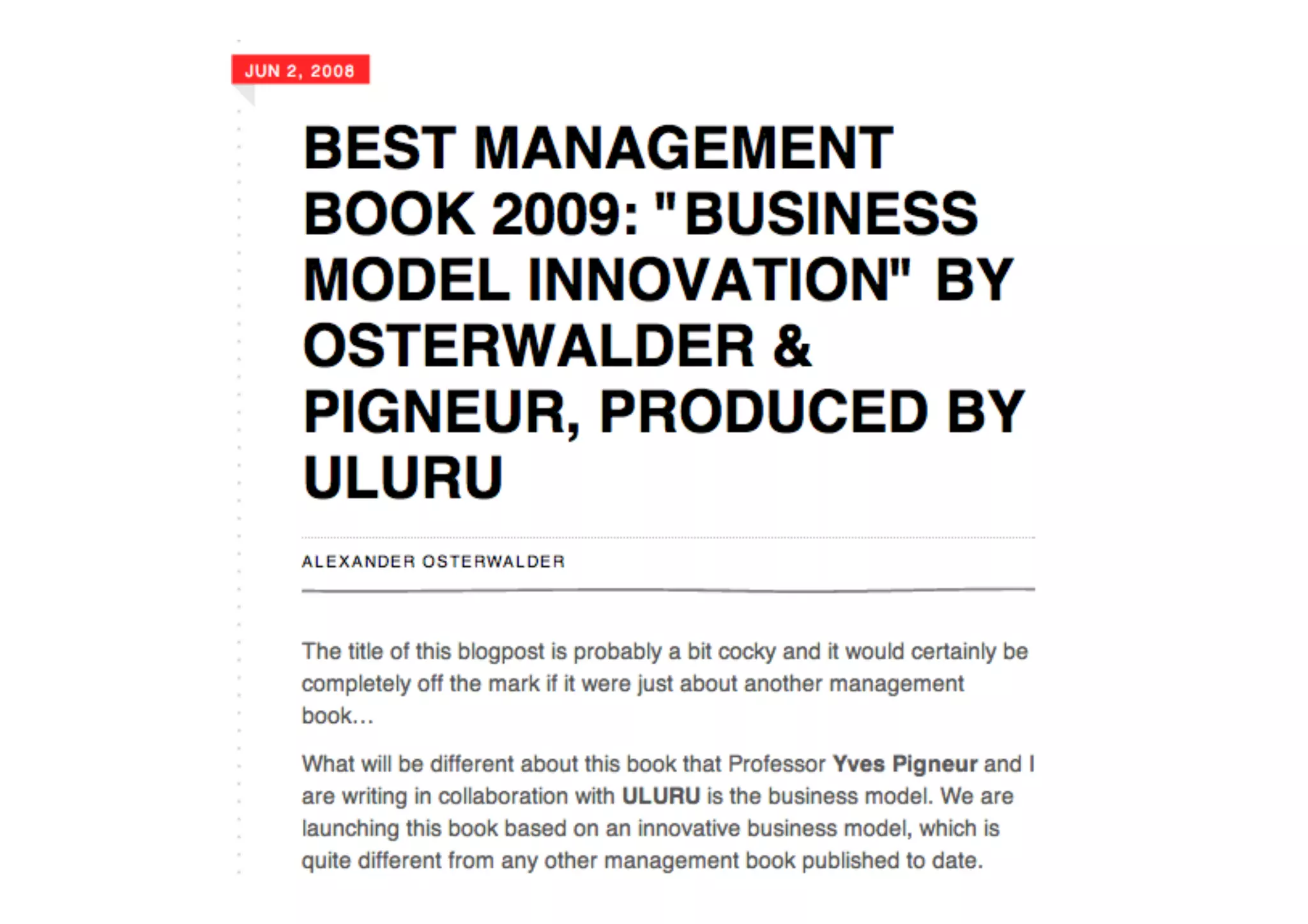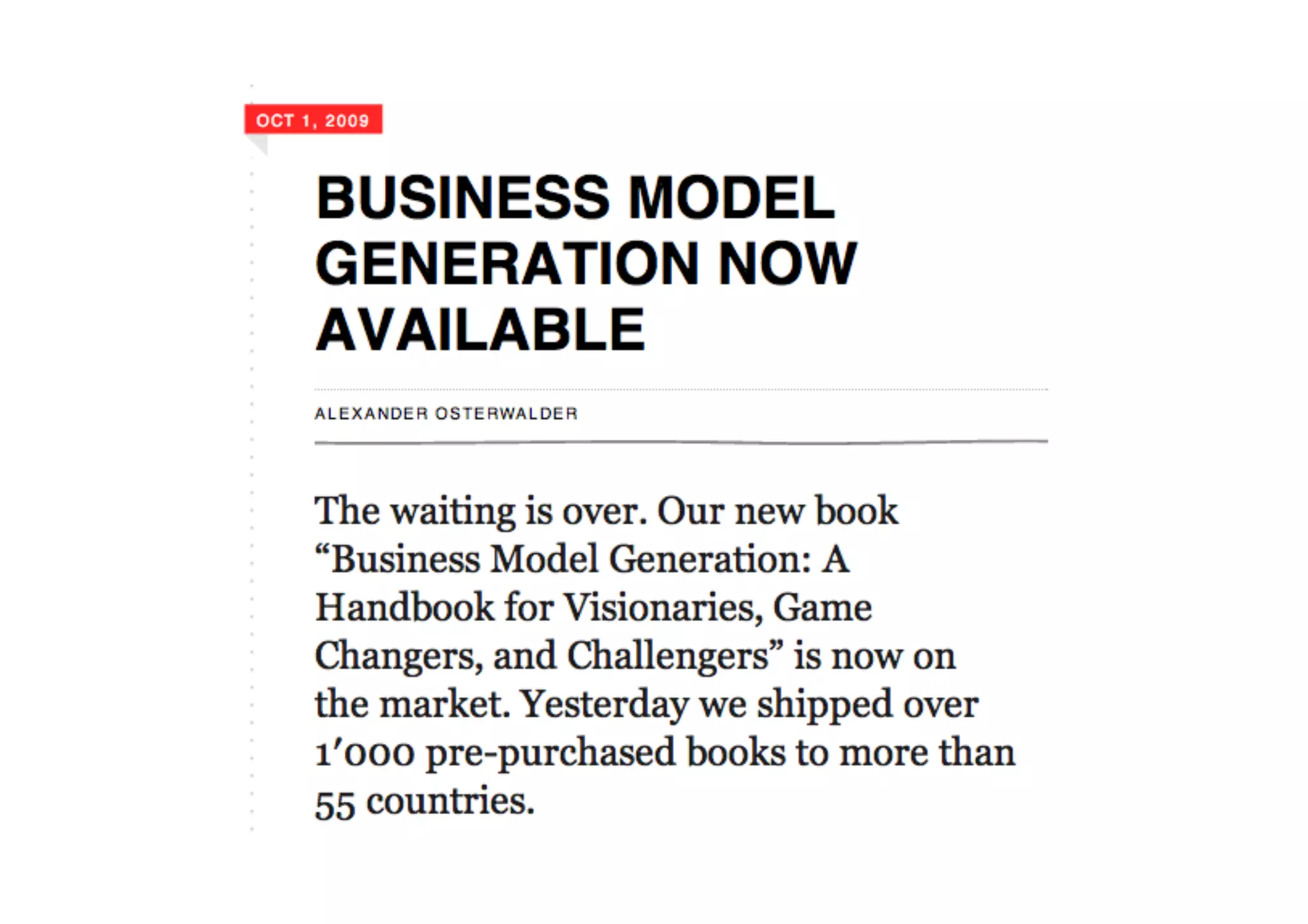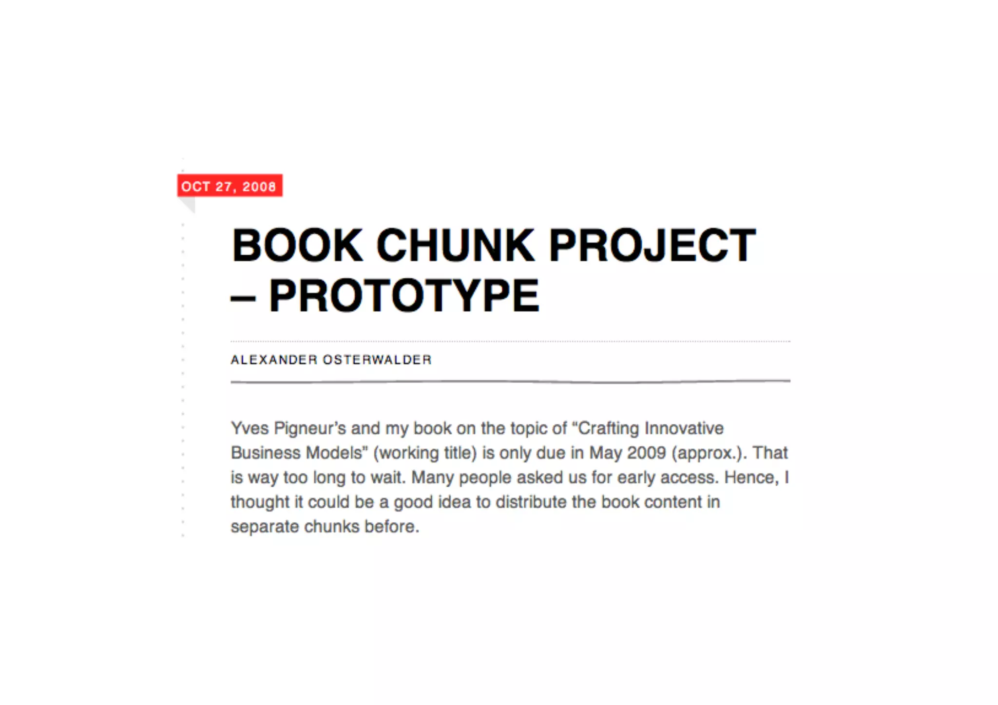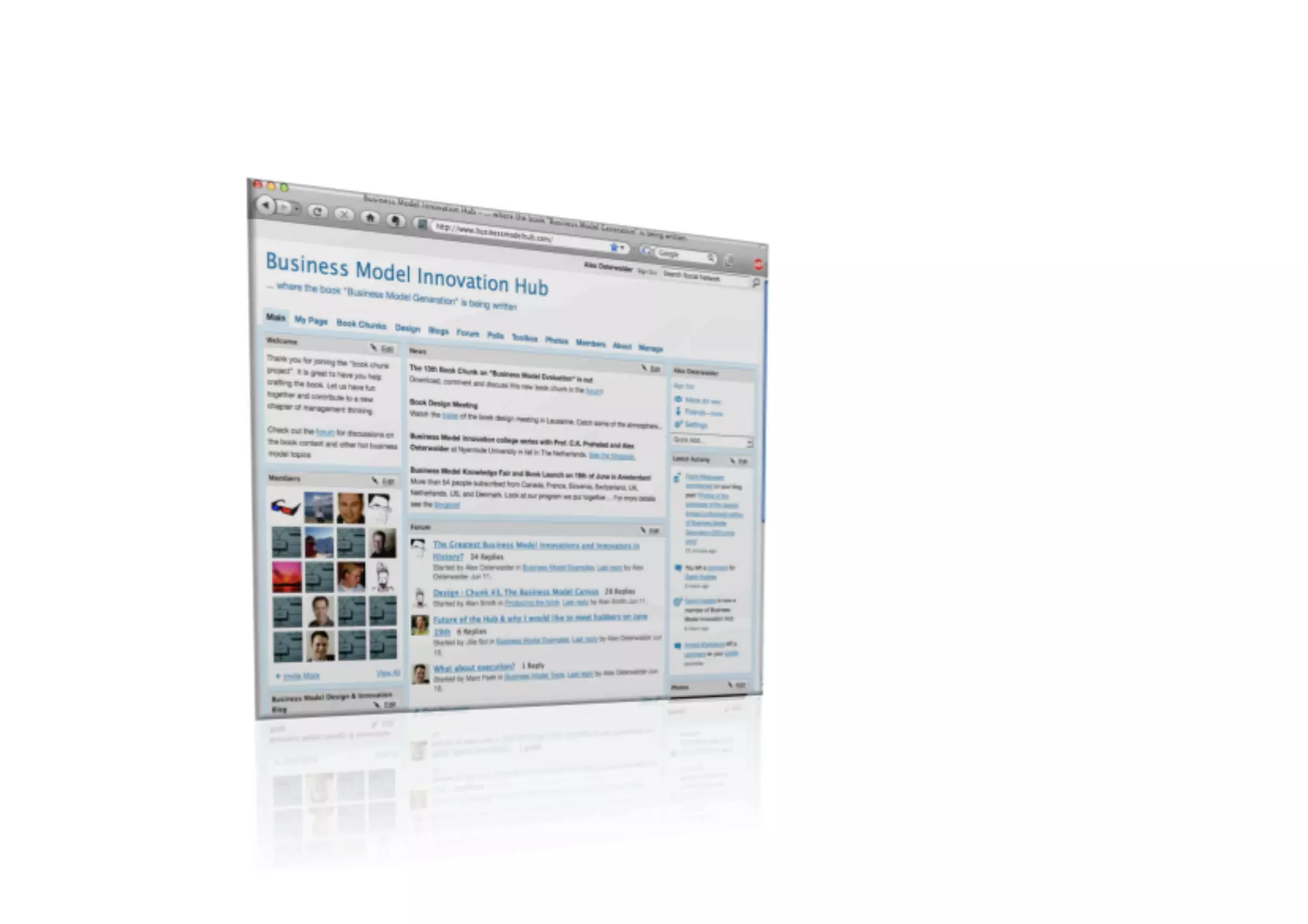 The document chronicles the development and evolution of a book focused on business model innovation from initial workshops in 2008 through to its launch and subsequent translations by mid-2010. It details interactions with various experts and the gradual maturation of the book idea, including significant planning and marketing activities. By June 2010, multiple translations were in progress, reflecting the book's growing impact and reach.