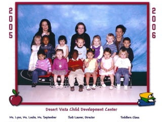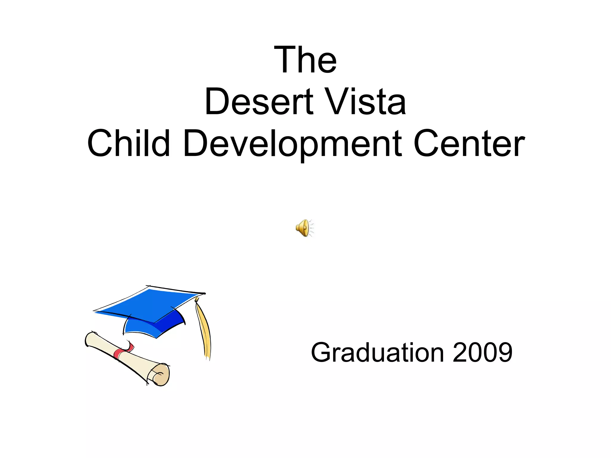 The document celebrates the 2009 graduation of the Desert Vista Child Development Center, highlighting the journey of graduates starting from the toddler room and their various activities. It mentions community involvement, classroom experiences, and a senior trip to San Francisco, along with gratitude to board members and parent participation. A reception at the center is planned to honor the graduates.
