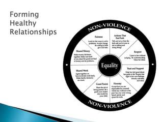 The document discusses the Center's workshops and advocacy efforts regarding violence prevention and breast cancer awareness. It also outlines PAAVE's training program and definitions of sexual assault, consent, statistics on victimization, the effects of assault on victims, and ways to rethink violence and coercion.