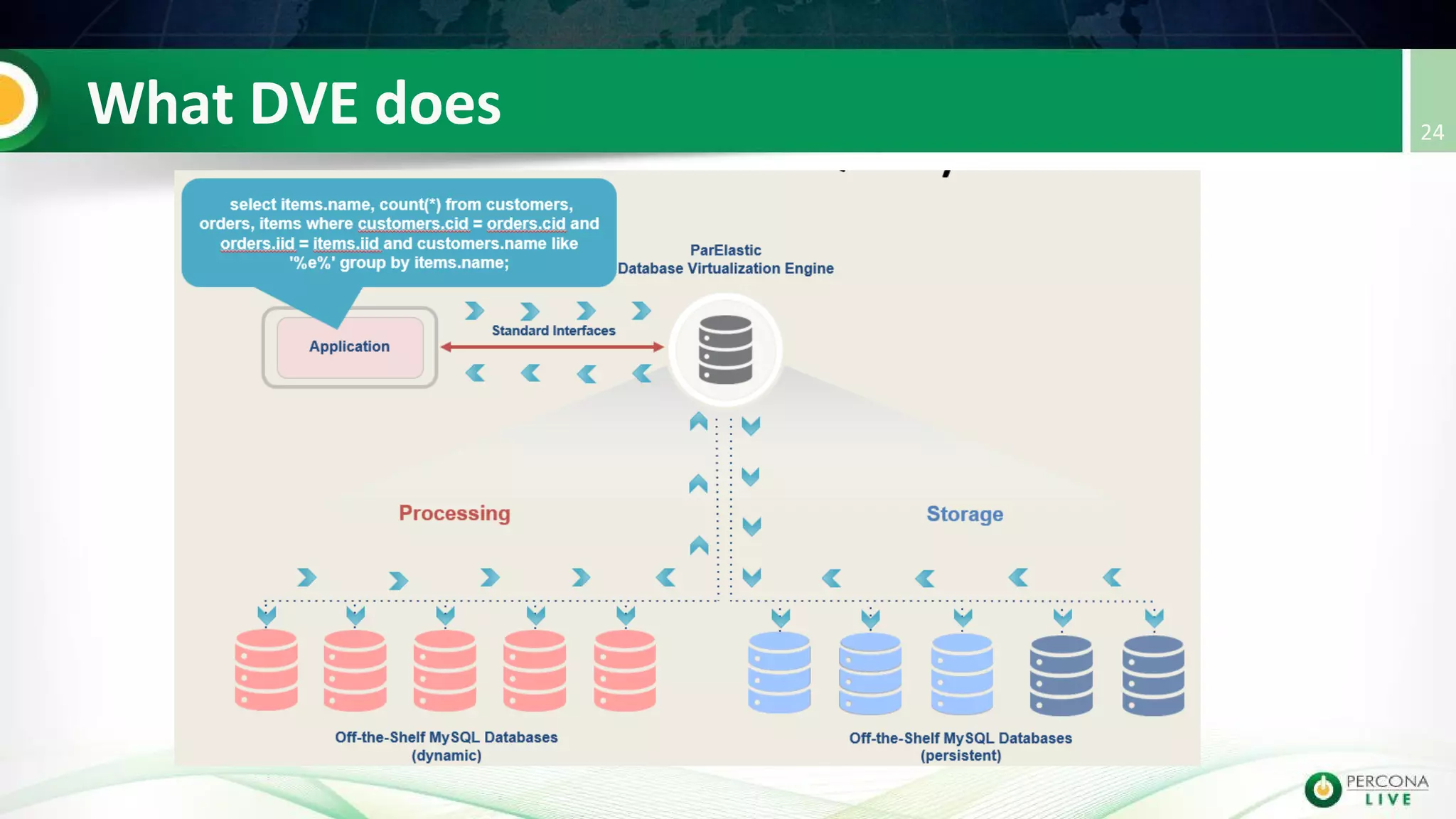 The document details commands and operations performed in a MySQL environment, focusing on creating persistent sites, groups, and templates for database management. It outlines the distribution of data across sites and the execution of SQL queries, demonstrating features such as sharding, parallel execution, and data integrity. Key actions include creating and modifying groups, defining templates, and executing queries to manage and retrieve data efficiently.
