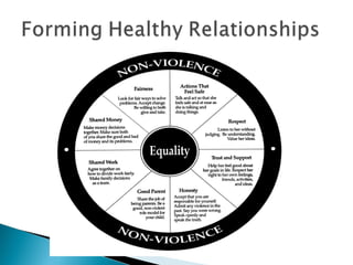 The document outlines a presentation from the Jean Nidetch Women's Center about their Peers Advocating for Anti-Violence Education program, which trains students to be advocates for victims of domestic violence and sexual assault; it discusses definitions of sexual assault, consent, and Nevada law; and provides statistics and information about the impacts of violence and myths and facts regarding domestic violence and sexual assault.