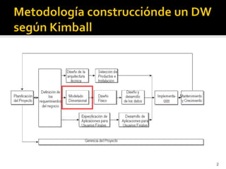 This document discusses different types of dimensional data modeling for data warehouses. It describes star schemas as having a central fact table connected to dimension tables. Snowflake schemas refine star schemas by normalizing dimensional hierarchies into smaller dimension tables. Fact constellations have multiple fact tables that share dimension tables, forming a galaxy schema with interconnected stars.