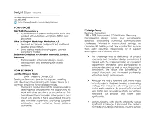 - Over 10 years of experience as an architect providing BIM/CAD services on projects ranging from residential to corporate buildings.
