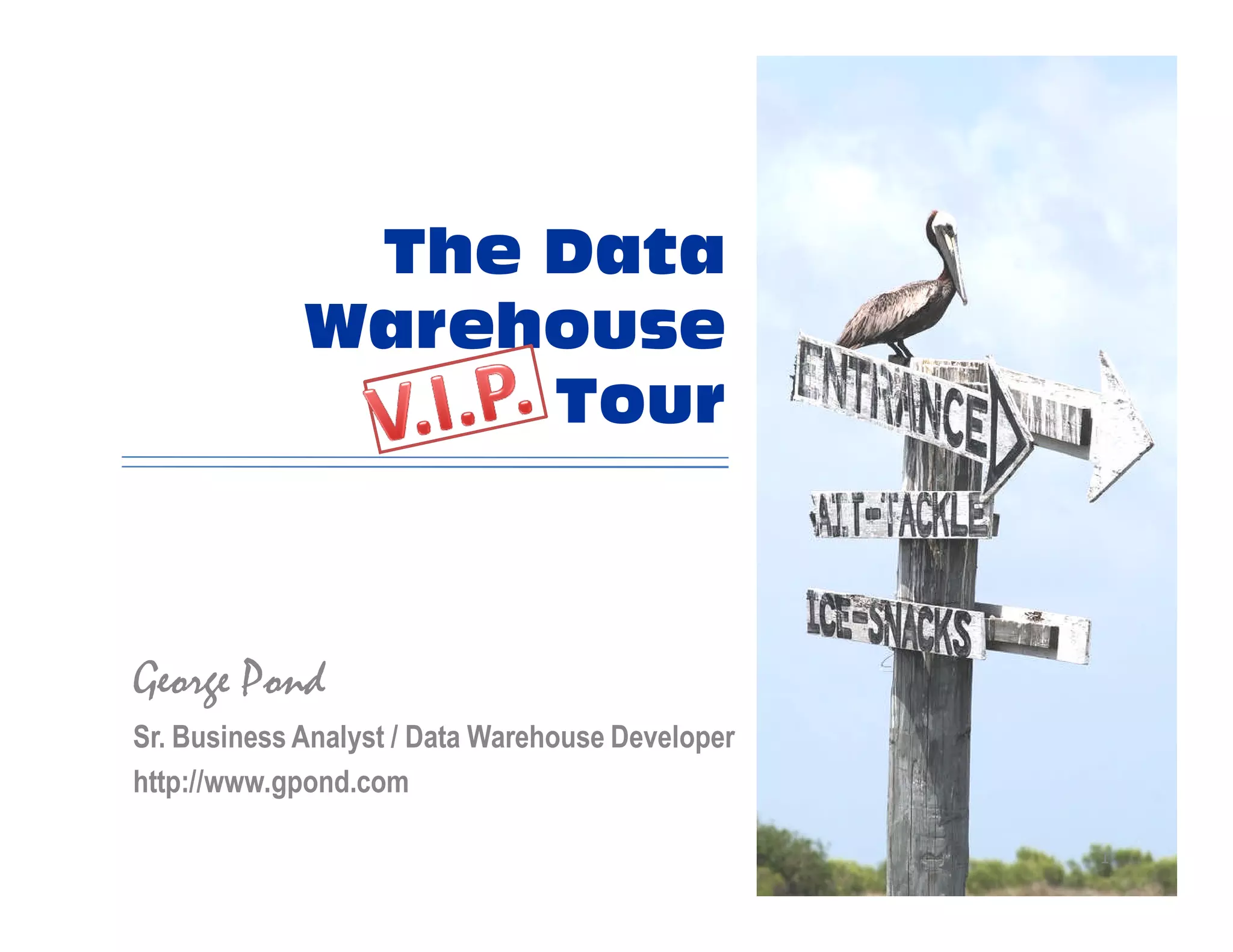 The document outlines a tour of a data warehouse for Cypress Cay, detailing the functional requirements and proposed solutions for data management and analysis. It highlights the need for online analytical processing, data requirements, and the integration of Microsoft SQL Server components to facilitate data retrieval and reporting. The tour concludes with a demonstration of an OLAP cube built from randomized data, showcasing key features like trend analysis and drill-down capabilities.