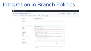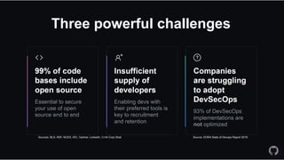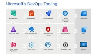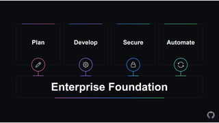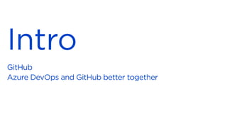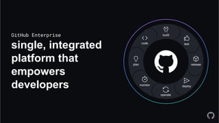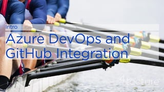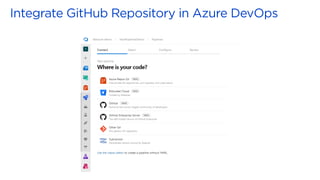 Microsoft acquires GitHub to combine GitHub's developer tools with Microsoft's capabilities in AI and security. GitHub Actions allow developers to automate workflows directly in code repositories through YAML configuration files. Reusable workflows allow sharing common steps between workflows to avoid duplication. GitHub hosted runners are virtual machines that automatically run and execute workflow steps. Self-hosted runners can be installed on-premises to run private workflows. Azure DevOps integrates with GitHub through linking work items to pull requests to track issues. DevSecOps practices can be enabled through integrating GitHub and Azure services for security and compliance.