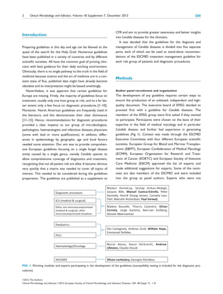 This document summarizes the process undertaken by an ESCMID task force to develop European guidelines for the diagnosis and management of Candida diseases. The task force included members from various relevant medical societies. They created guidelines targeted towards four main patient populations at risk for Candida diseases. In addition to treatment recommendations, the guidelines provide guidance on diagnostic procedures. The guidelines were developed using the GRADE framework and were presented at ECCMID 2011 for discussion before finalization. The final guidelines aim to provide clinicians in Europe with guidance for diagnosing and managing Candida diseases.