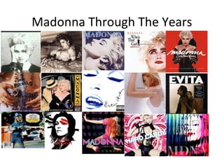 Dyer's Star Theory outlines Madonna's career stages from her early rebellious stage in the 1980s through to her current stage. Her first album established her edgy image which continued into her second album. In the mid-1980s, her music took a cleaner direction and she targeted older audiences. She then began acting in movies and broadway which expanded her fan base. In the 2000s, her music took on more folk and country influences. Recently, her albums have focused more on her sexuality and promoting her image as a dancer.