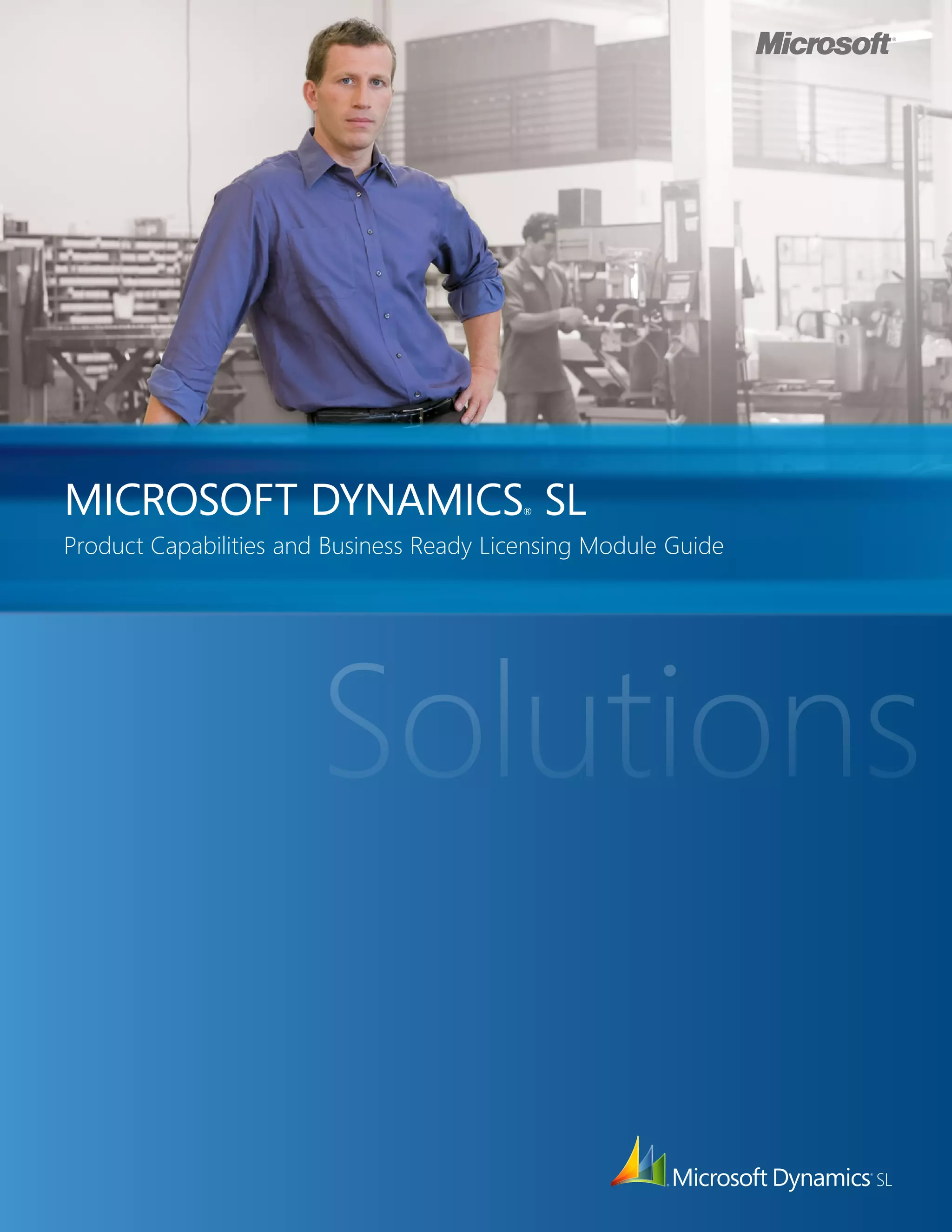 The document provides an overview of the product modules available for Microsoft Dynamics SL, grouped by functional area. It describes the Business Essentials Edition, which provides core financial and trade functionality, and the Advanced Management Edition, which offers a broader set of functionality. Both editions include certain base components. Additional a la carte modules can be purchased individually to expand the solutions. The document lists and describes the modules included in each edition and available a la carte.