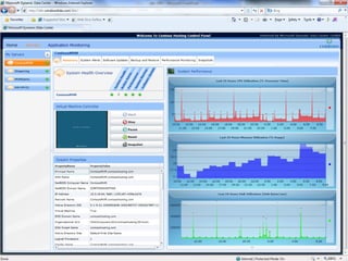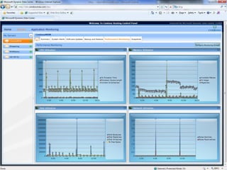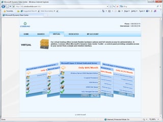 The document discusses Dynamic Data Center (DDC), an industry term for a virtualized and automated infrastructure that provides real-time provisioning, high availability, unlimited capacity, and self-healing capabilities. It outlines the goals and technologies covered by DDC for hosting providers, including Hyper-V, System Center components, and guidance for bare metal and virtual server provisioning. The presentation also provides overviews of key Dynamic Data Center technologies like Hyper-V, clustered shared volumes, live migration, and how System Center products like Virtual Machine Manager, Operations Manager, and Data Protection Manager integrate with and support a DDC.