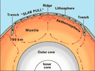 The theory of plate tectonics explains that Earth's outer layer is made up of plates that have moved throughout geological history. These plates float on top of the mantle and move at boundaries where they diverge, converge, or slide past one another. Convection currents in the upper mantle provide the driving force that causes plates to move over time.