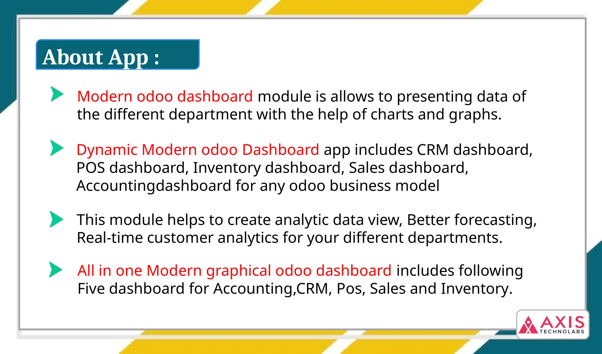 👉Lets check out some Important features of Odoo modern dashboard module :📊