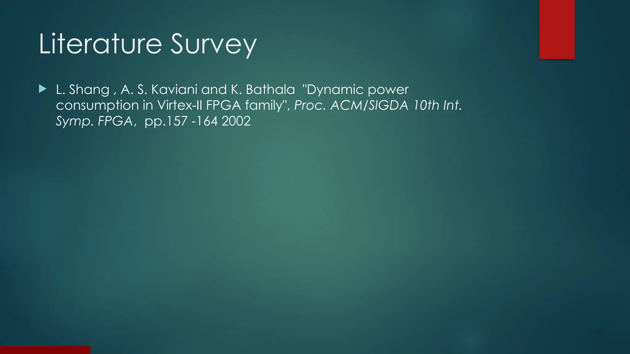 The document surveys dynamic power consumption in FPGAs, specifically focusing on the Virtex-II family, emphasizing the challenges posed by high transistor density in submicron IC design. It discusses key factors contributing to power dissipation, including effective capacitance, resource utilization, and switching activity. The study highlights the importance of understanding these factors for better design optimization and suggests areas for further research, such as newer Virtex devices and more realistic input patterns.