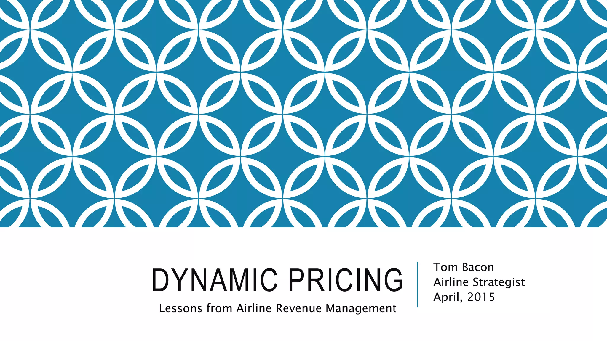 Dynamic pricing is practiced across industries to personalize prices based on customer data analytics. Pioneered by airlines in the 1980s as revenue management, it involves segmenting customers, adjusting prices based on demand forecasts, and unbundling/rebundling services. Tom Bacon has applied these techniques at several airlines, leading to increased ancillary revenue and competitive fare positioning through integrated pricing, merchandising, and operations.