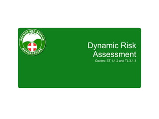 The document outlines the principles of dynamic risk assessment in search and rescue operations, emphasizing the need for a safe environment and personnel. It highlights the importance of evaluating risks and implementing control measures to ensure safety while acknowledging the unpredictability of missing person situations. The document also specifies the roles of individuals involved and iterates that every search serves as a test of safety measures.