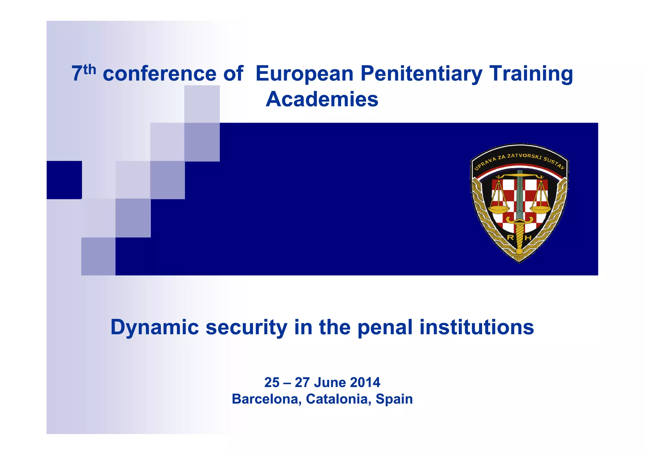 7th conference ofEuropean Penitentiary Training Academies 7th conference of European Penitentiary Training Academies Dynamic security in the penal institutions 25 – 27 June 2014 Barcelona, Catalonia, Spain Dynamic security in the penal institutions 25 – 27 June 2014 Barcelona, Catalonia, Spain